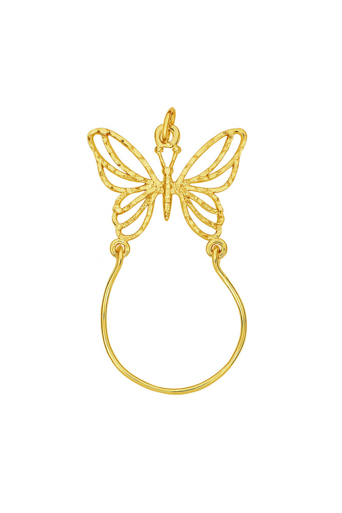 This elegant 10KT gold pendant charm holder features a beautifully crafted butterfly design atop a sleek circular frame, perfect for displaying your favorite charms or pendants. Weighing 2.90 grams, it combines functionality with a polished, stylish finish, making it a versatile addition to any jewelry collection.