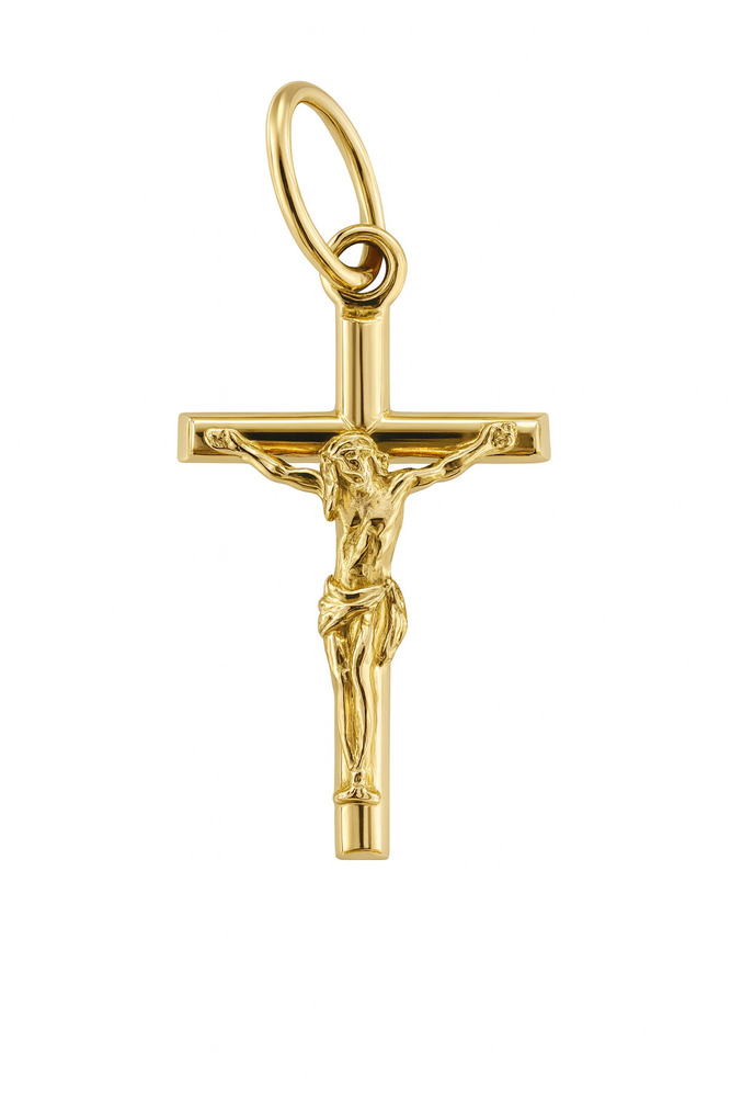This beautifully crafted 10kt gold crucifix pendant is a powerful symbol of faith and devotion. Weighing 1.20 grams, it features a detailed depiction of Christ on the cross with a smooth, polished finish that reflects timeless craftsmanship. Elegant and meaningful, this pendant serves as a daily reminder of strength, hope, and spiritual grace.