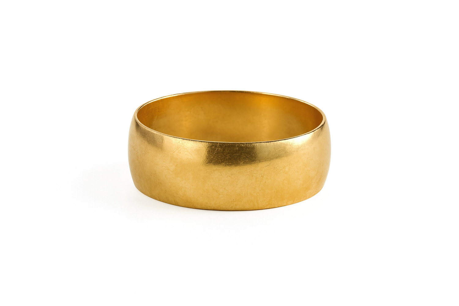10KT yellow gold band weighing 5.80g. A classic wide design with a smooth, polished finish that gives it a rich, timeless look. The warm 10kt gold tone stands out beautifully and offers everyday durability with an elegant feel. A solid, quality piece perfect for daily wear or adding to any jewelry collection.