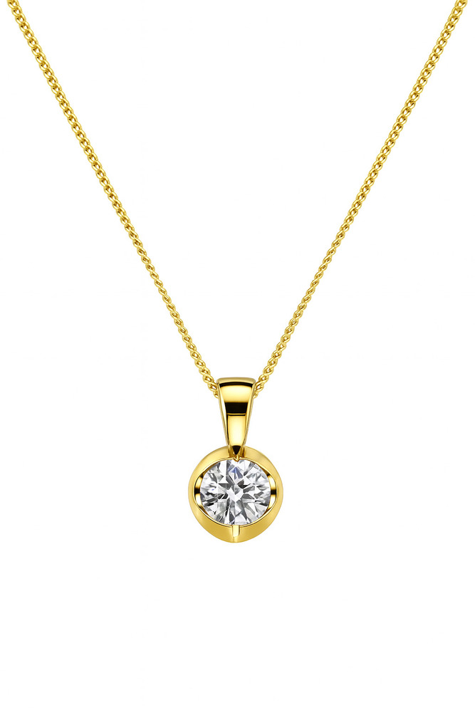 A timeless symbol of elegance, this pendant is crafted in 14kt yellow gold and features a brilliant diamond set in a sleek bezel design. The warm golden frame enhances the stone’s natural sparkle, making it a versatile piece that shines from day to night. Weighing 1.30 grams, it is lightweight yet luxurious perfect for everyday sophistication or as a meaningful gift. A classic diamond solitaire look with a modern touch that never goes out of style.