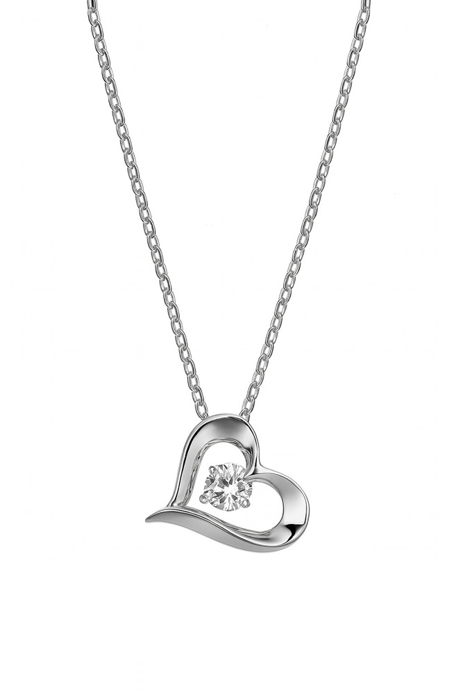 Delicate and romantic, this pendant is crafted in 14kt white gold and weighs 1.90 grams. The design features a graceful open heart holding a sparkling diamond at its center, symbolizing love and elegance. A timeless piece perfect for daily wear or as a meaningful gift for someone special.