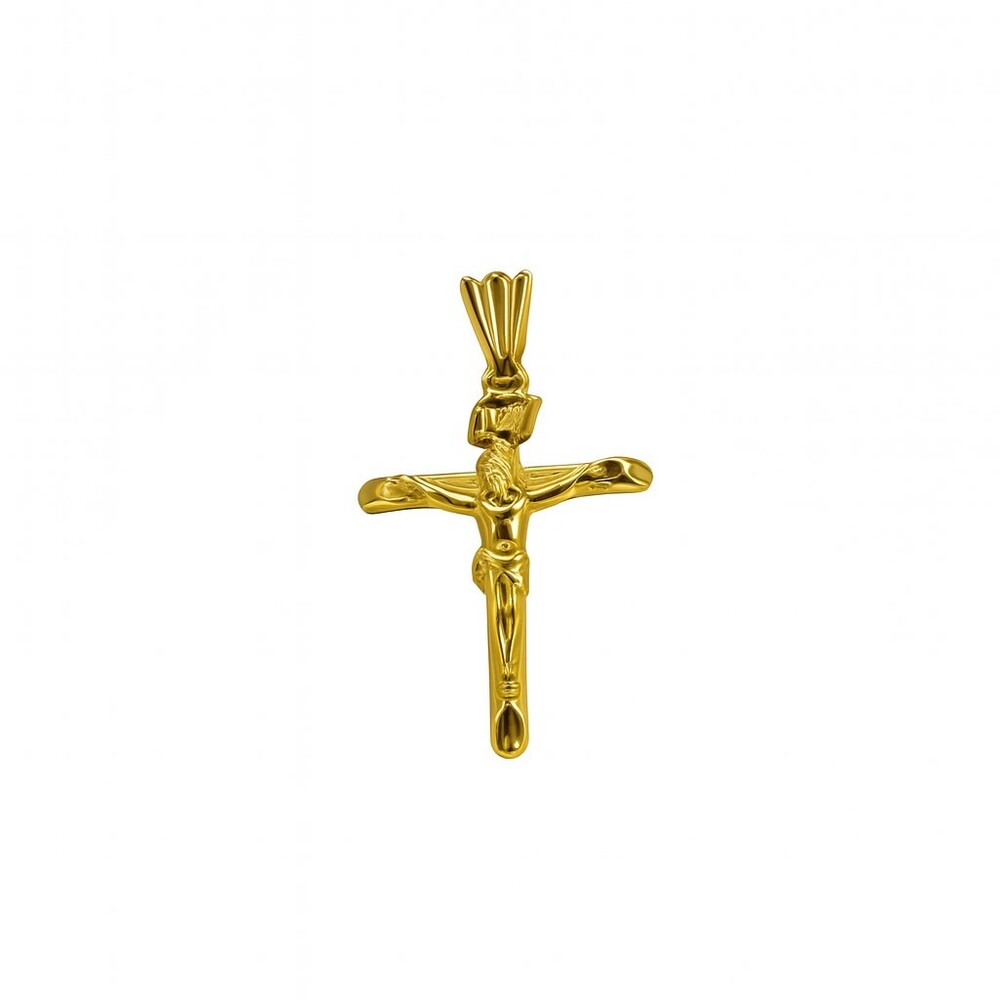 14KT Yellow gold Jesus and cross pendant. Weighs 1.30 grams.