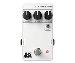 The JHS Pedals 3 Series is a collection of pedals designed to give you affordability and simplicity without compromising quality. Each 3 Series pedal is made by us in Kansas City, MO, using high-quality parts, quality control, and attention to every detail. Each pedal has three simple controls and one toggle that offer a wide range of sounds, perfect for beginners and professionals alike. The JHS Pedals 3 Series will inspire your playing and help you explore new sounds at a totally approachable price point. The JHS Pedals 3 Series Compressor is a simple and powerful compressor that will give you everything from subtle tone smoothing to a super squashed sound. The Attack and Sustain knobs allow you to dial in the compression's overall feel and response to your playing, while the Volume knob enables you to set the overall volume at unity or boosted. The Bright toggle engages a brighter EQ so that your tone doesn't get lost in certain situations. The JHS Pedals 3 Series Compressor runs on 9V DC Negative Center power and consumes 8mA.