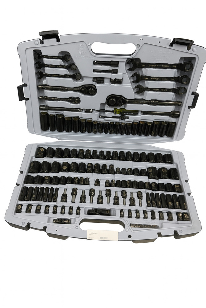 A complete, heavy duty solution for mechanics, DIYers, and anyone who wants dependable tools that get the job done. This 149 piece Stanley set includes a full range of metric and SAE sockets, ratchets, extensions, hex bits, and wrenches everything organized in a durable carry case for easy transport and storage. Built from high strength steel with a sleek black finish, these sockets are designed for long lasting performance, tight tolerances, and precise fit. Perfect for automotive work, home repairs, and professional use.